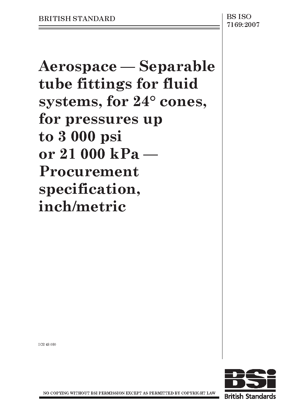 Aerospace. Separable tube fittings for fluid systems, for 24° cones, for pressures up to 3000 psi or 21000 kPa. Procurement specification, inch/metric