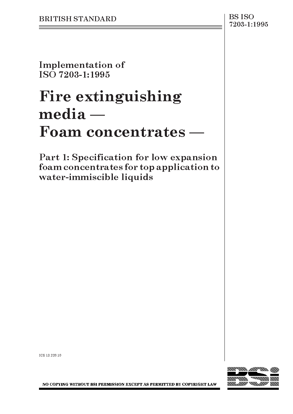Fire extinguishing media. Foam concentrates Specification for low expansion foam top application to water-immiscible liquids