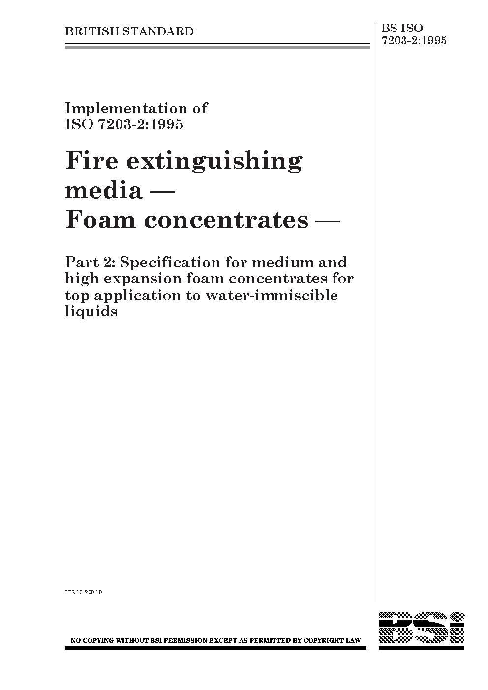 Fire extinguishing media. Foam concentrates Specification for medium and high expansion foam top application to water-immiscible liquids