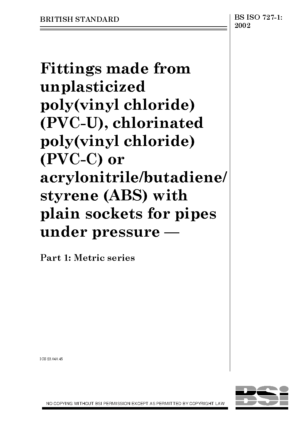 Styrene;Pressure equipment;Butadiene;Polyvinyl chloride;Unplasticized polyvinyl chloride;Thermoplastic polymers;Acrylonitrile butadiene styrene;Plastics;Dimensions;Pipe fittings;Acrylonitrile;Polyvinylidene chloride;Solvent welding