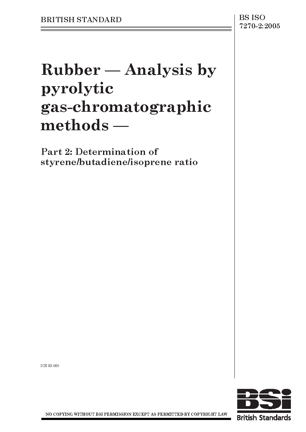 Rubber. Analysis by pyrolytic gas-chromatographic methods Determination of styrene/butadiene/isoprene ratio