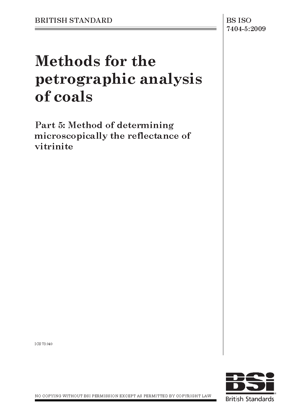 Coal — Methods for petrographic analysis Method of determining microscopically the reflectance vitrinite