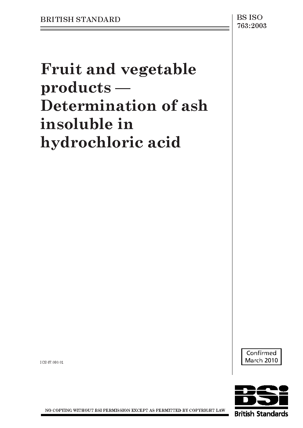 Fruit and vegetable products. Determination of ash insoluble in hydrochloric acid
