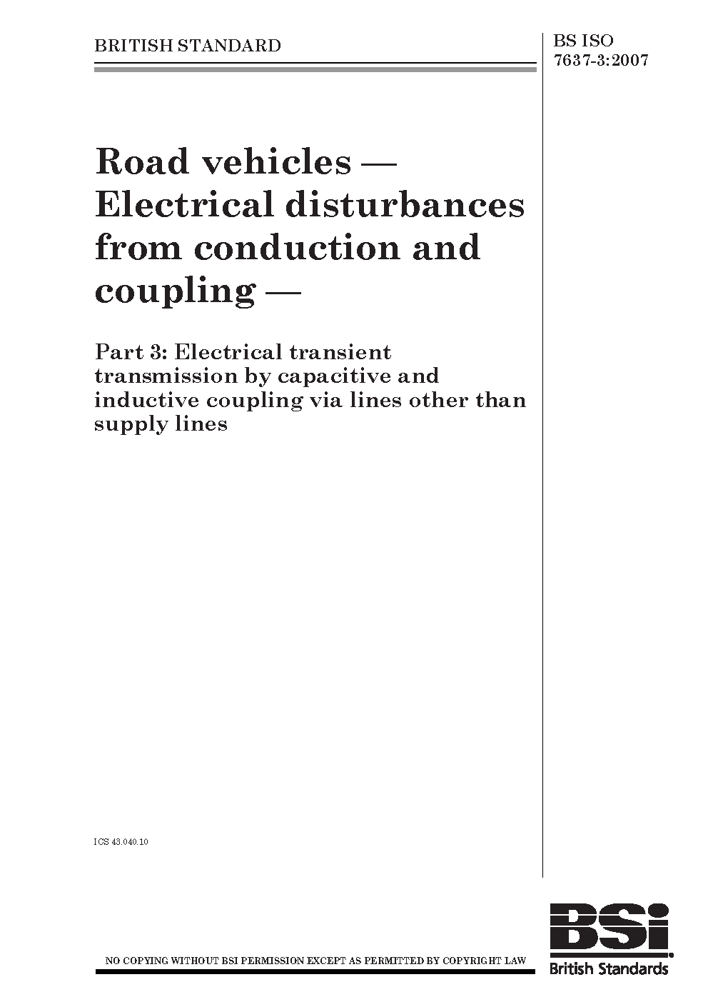 Road vehicles. Electrical disturbances from conduction and coupling transient transmission by capacitive inductive via lines other than supply