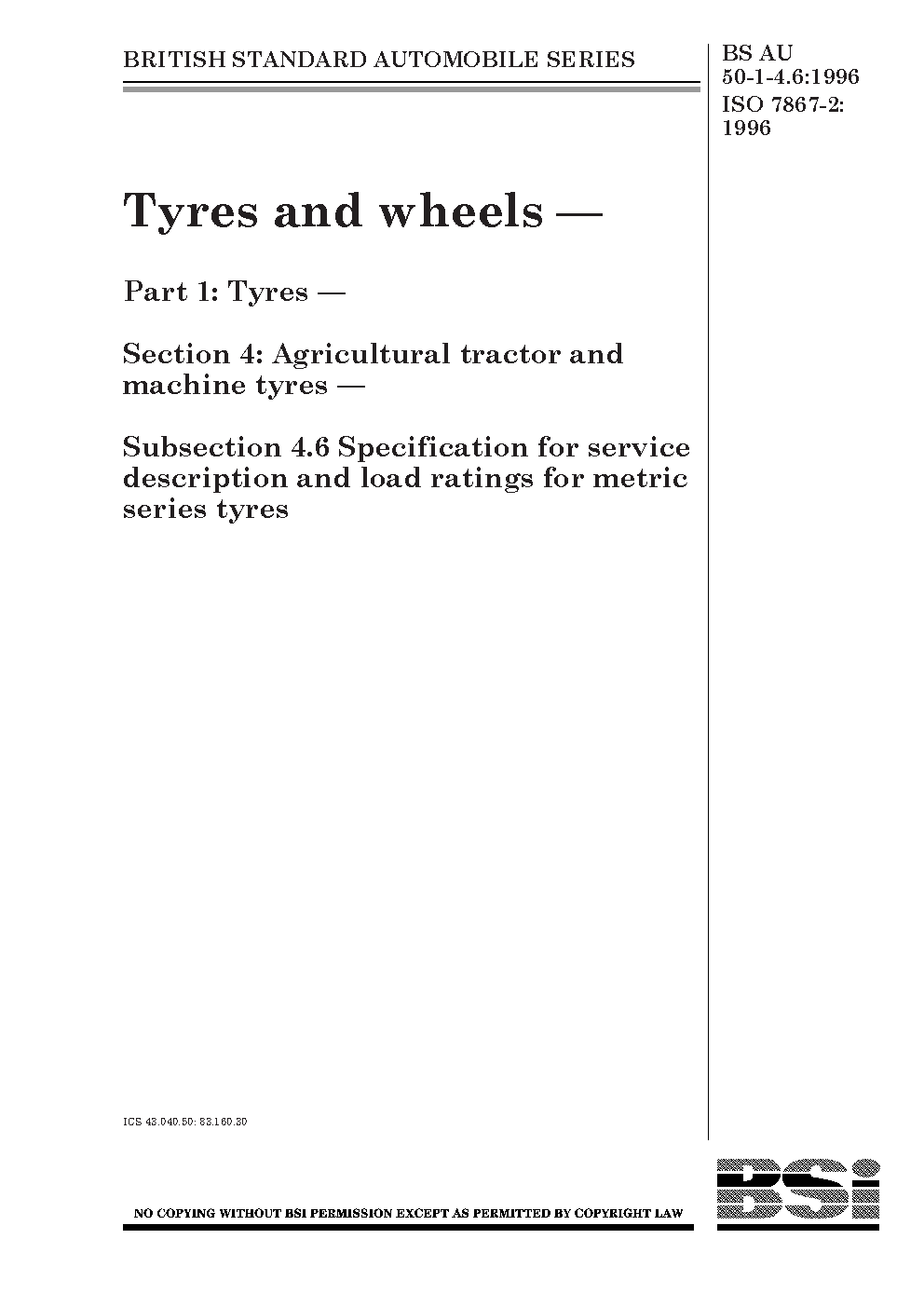 Tyres and rims (metric series) for agricultural tractors machines Service description load ratings