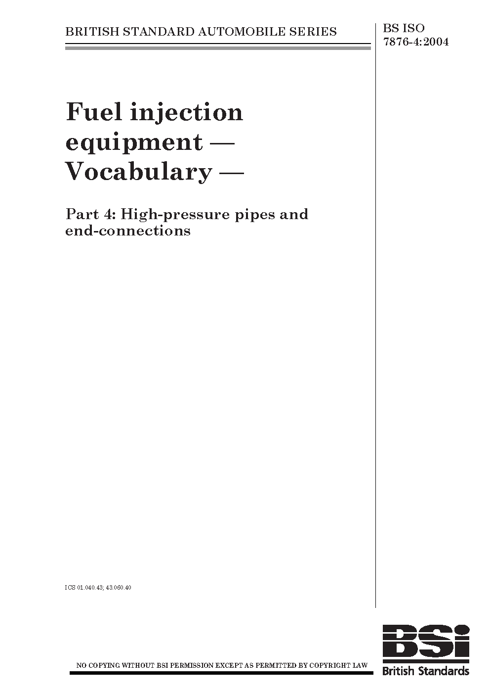 Fuel injection equipment. Vocabulary High-pressure pipes and end-connections