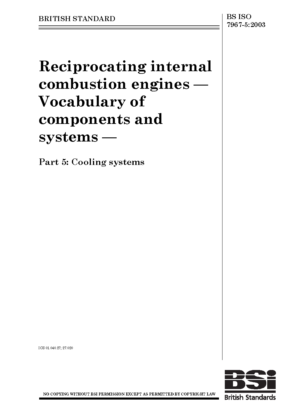 Reciprocating internal combustion engines. Vocabulary of components and systems Cooling