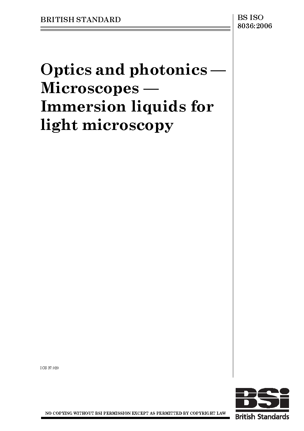 Optics and photonics. Microscopes. Immersion liquids for light microscopy
