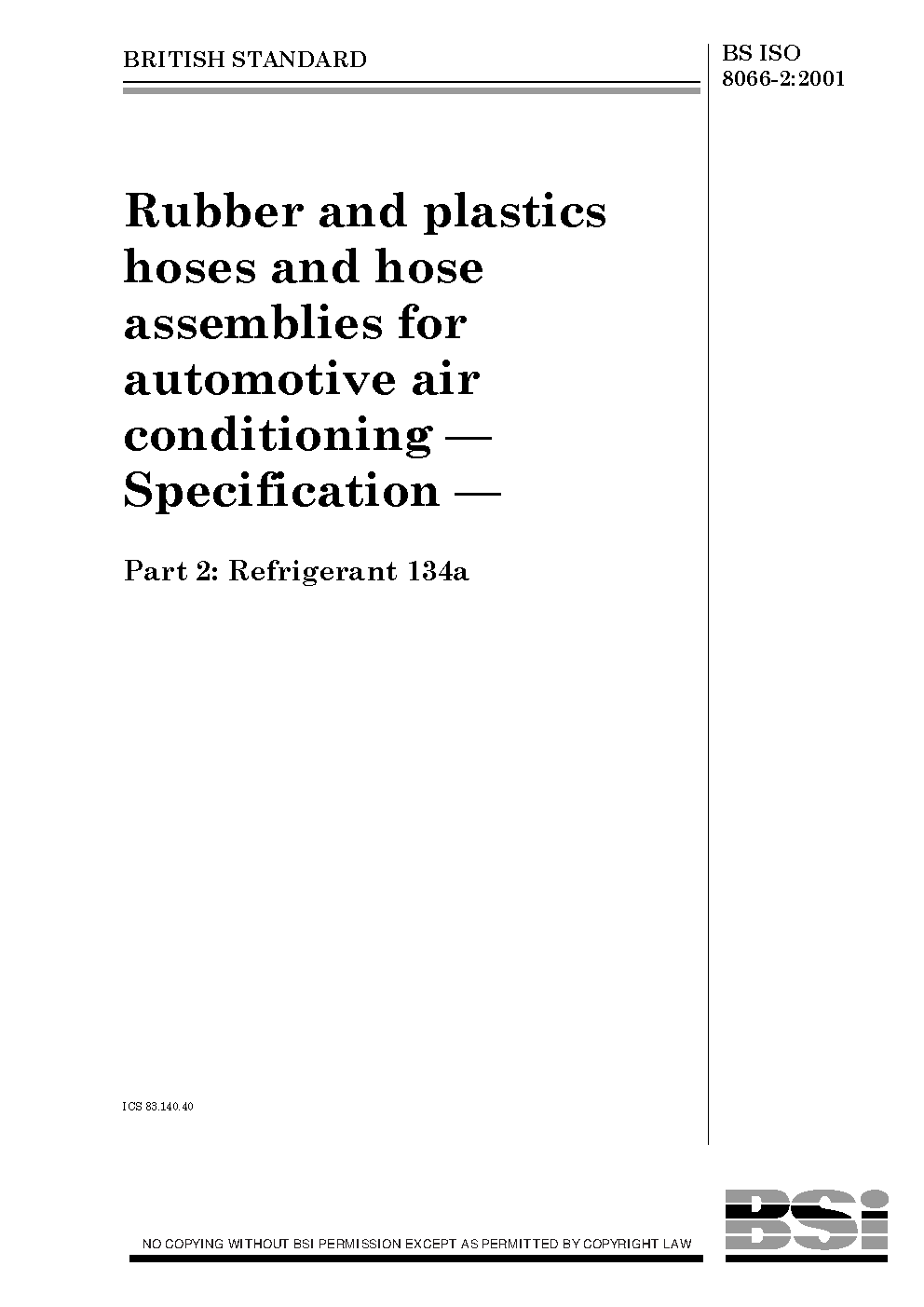 Rubber and plastics hoses hose assemblies for automotive air conditioning. Specification Refrigerant 134a