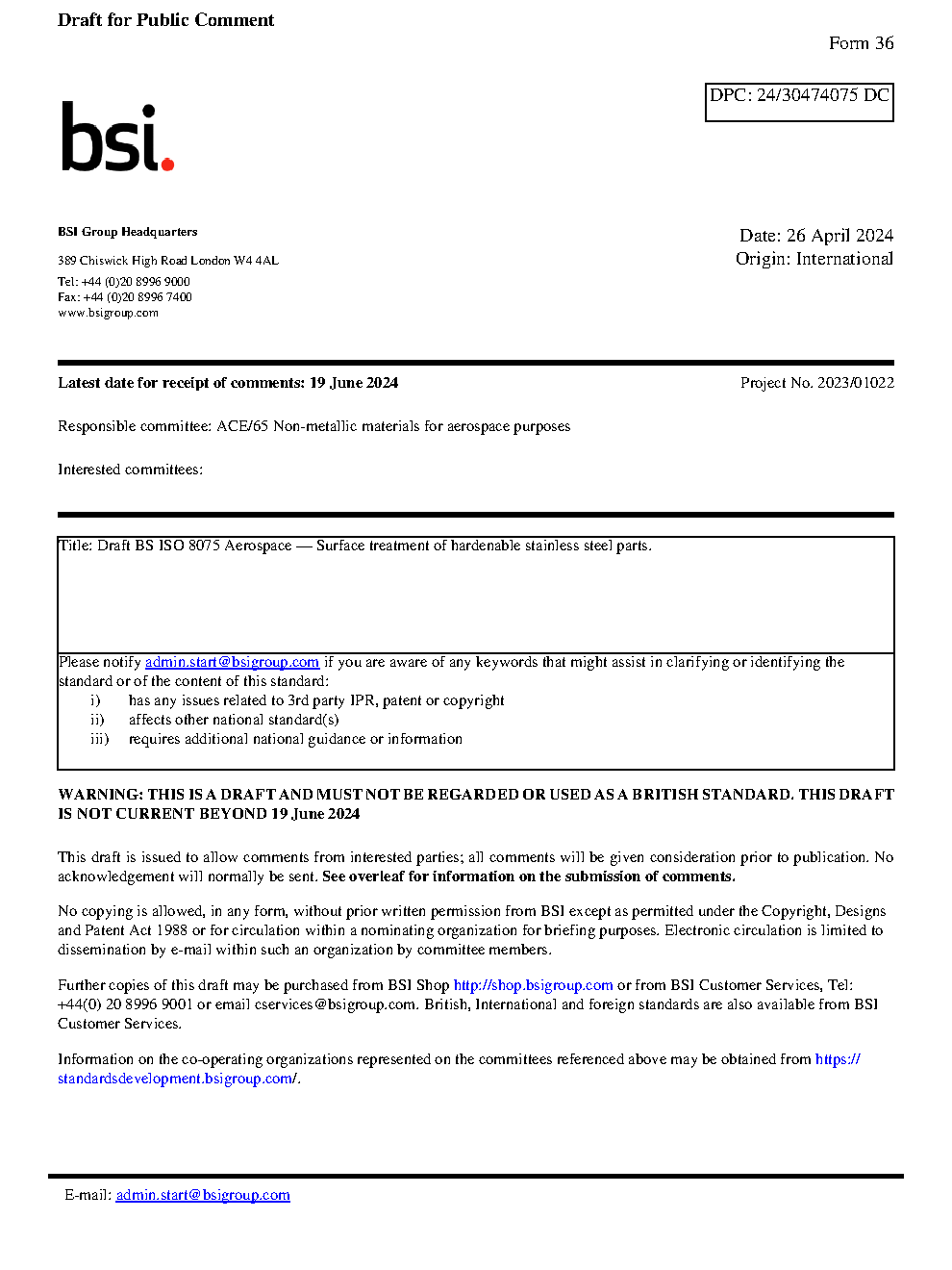 Aerospace. Surface treatment of hardenable stainless steel parts