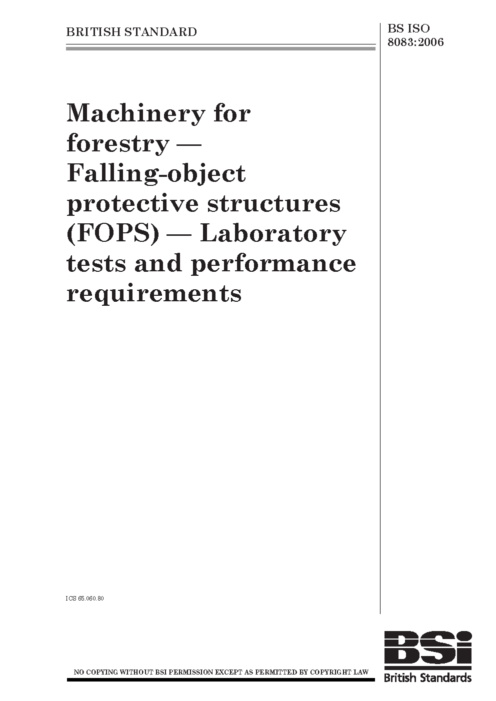 Machinery for forestry. Falling-object protective structures (FOPS). Laboratory tests and performance requirements