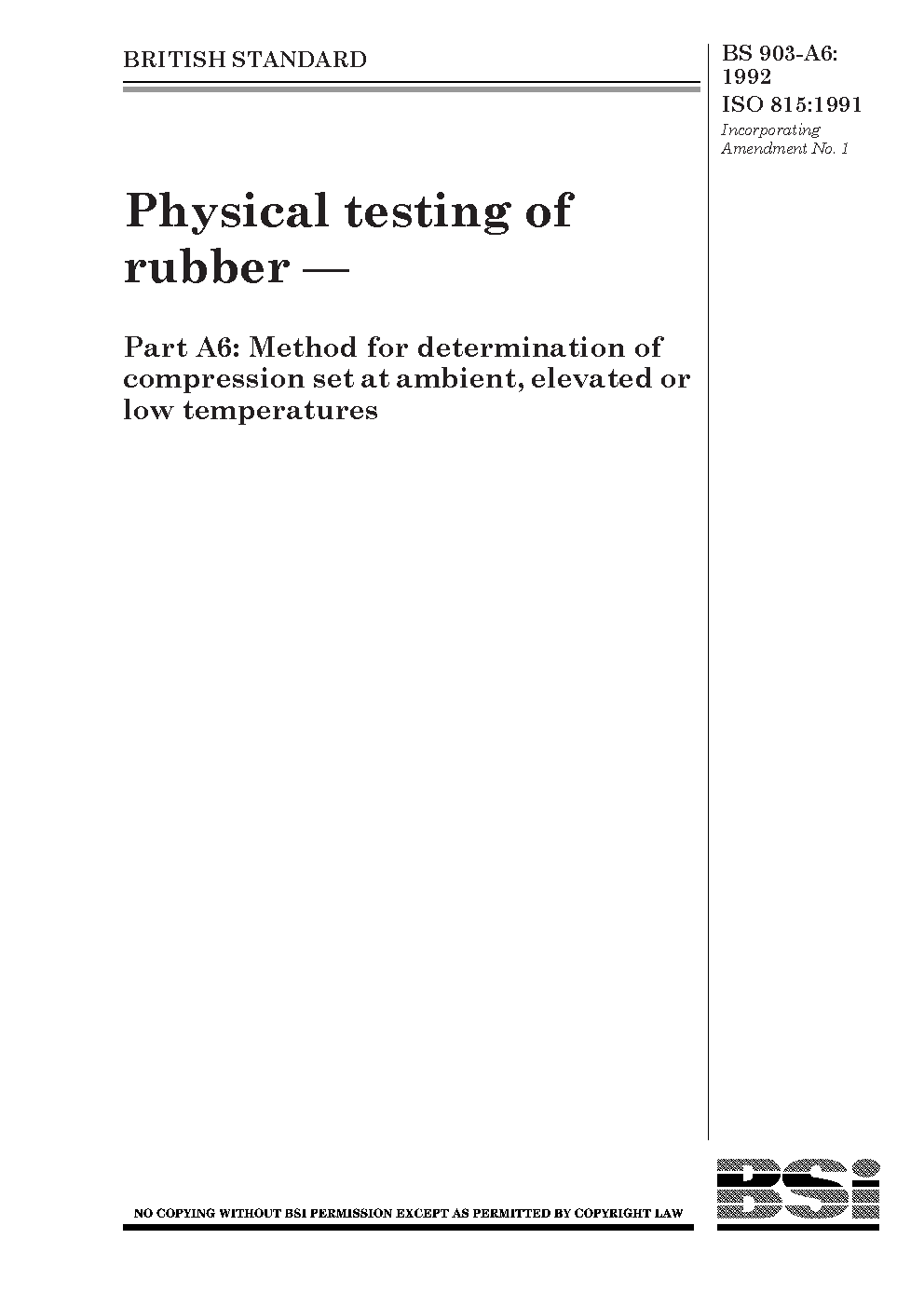 Rubber, vulcanized or thermoplastic. Determination of compression set At ambient elevated temperatures