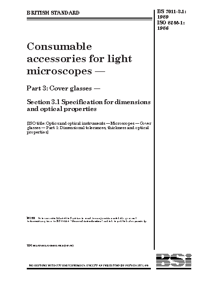 Microscopes. Cover glasses Dimensional tolerances, thickness and optical properties