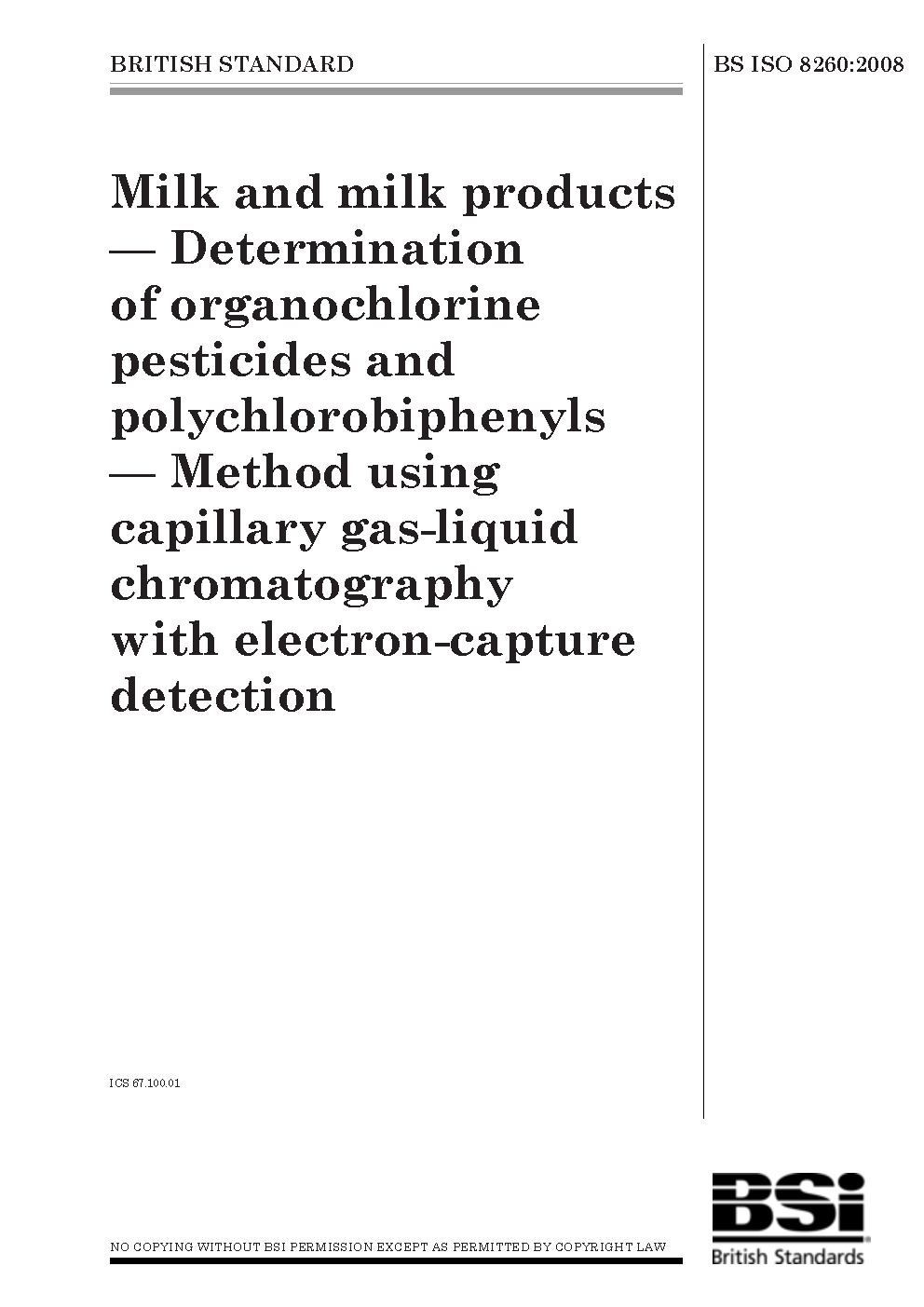 Milk and milk products. Determination of organochlorine pesticides and polychlorobiphenyls. Method using capillary gas-liquid chromatography with electron- capture detection