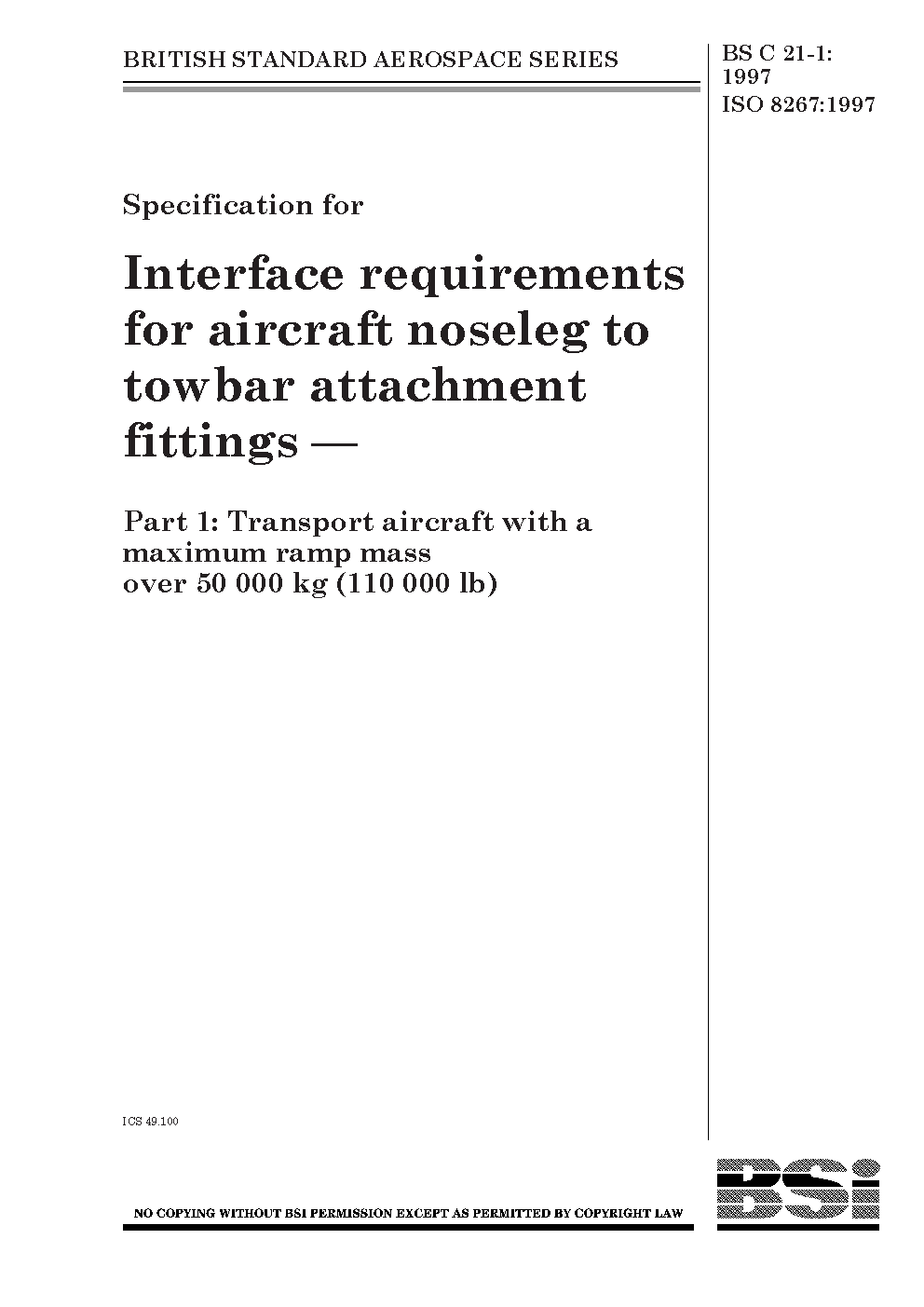 Aircraft. Tow bar attachment fittings interface requirements Regional aircraft