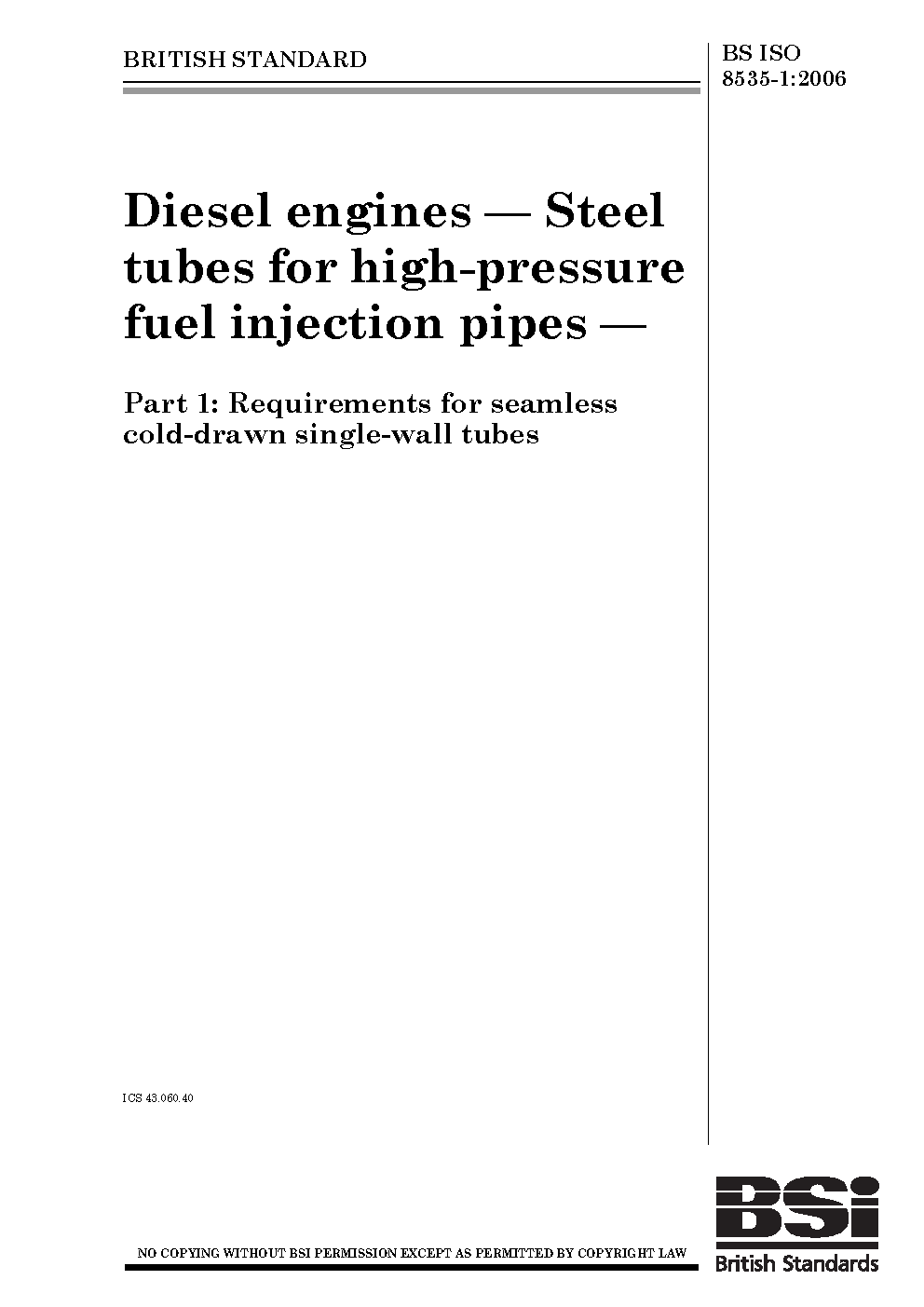 Diesel engines. Steel tubes for high-pressure fuel injection pipes Requirements seamless cold-drawn single-wall