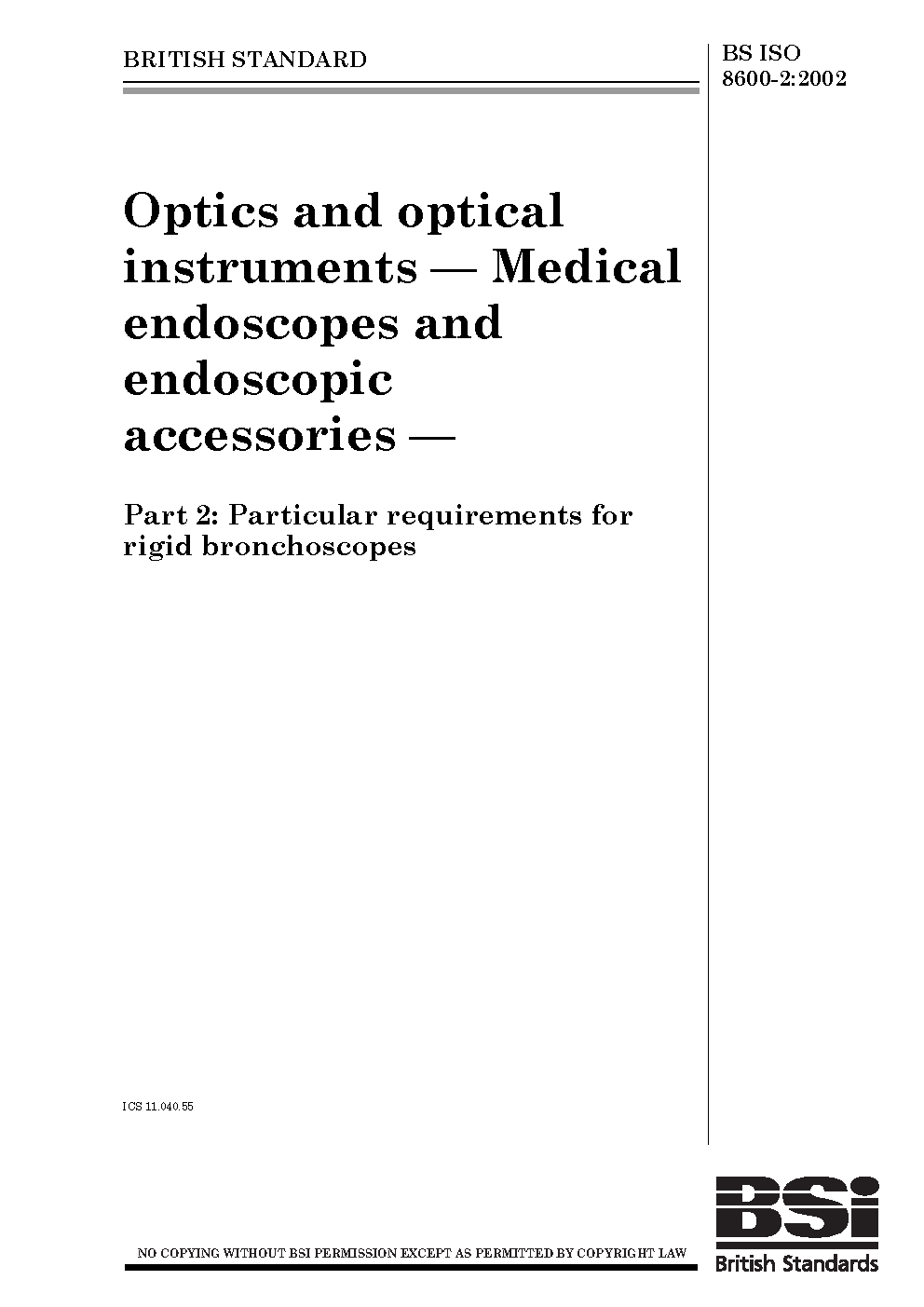 Optics and optical instruments. Medical endoscopes endoscopic accessories Particular requirements for rigid bronchoscopes