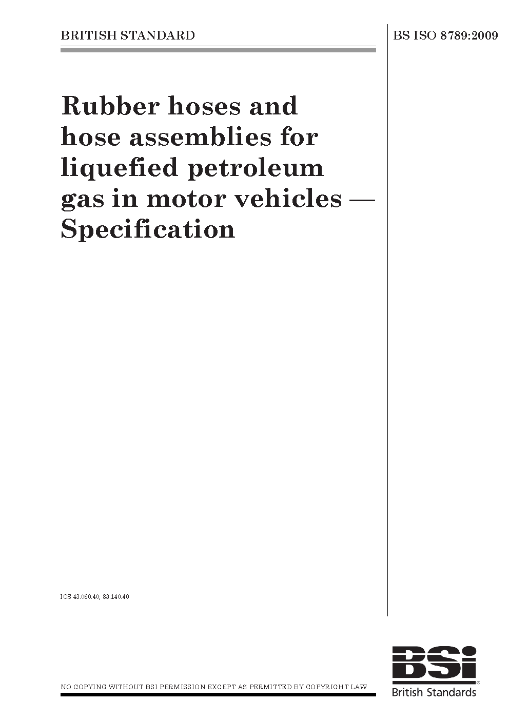 Rubber hoses and hose assemblies for liquefied petroleum gas in motor vehicles. Specification