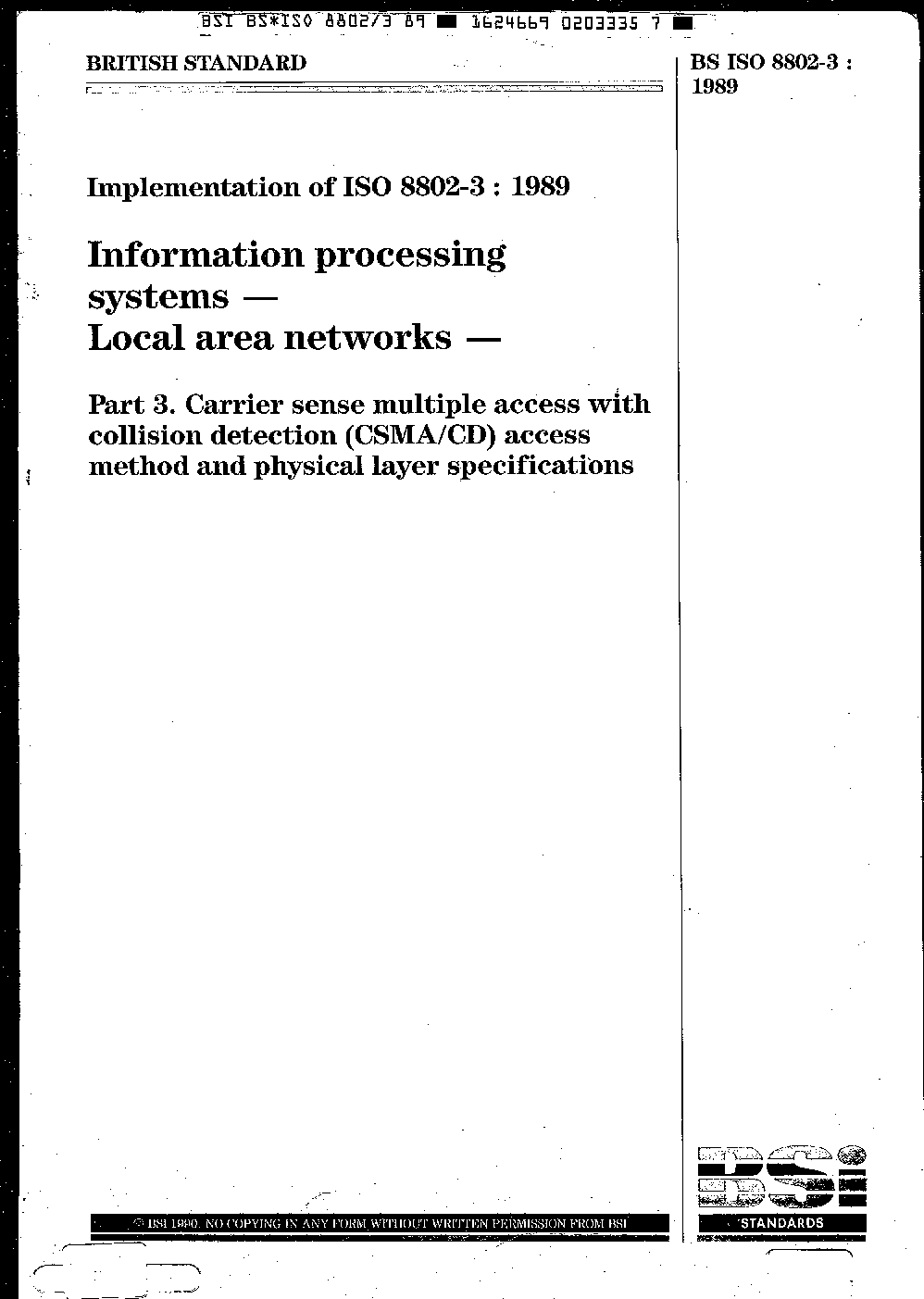 BS ISO 8802-3:1989