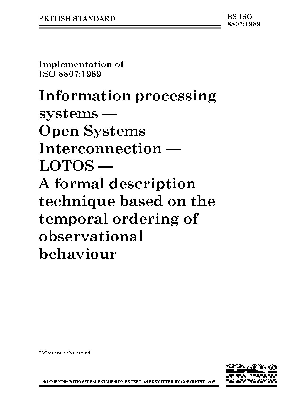 Information processing systems. Open systems interconnection. LOTOS. A formal description technique based on the temporal ordering of observational behaviour