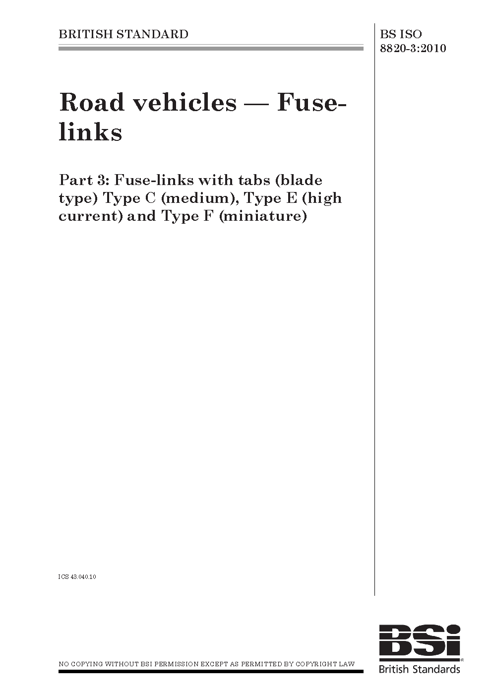 Road vehicles. Fuselinks Fuse-links with tabs (blade type) Type C (medium), E (high current) and F (miniature)