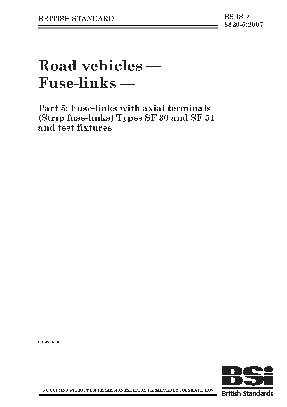 Road vehicles. Fuse-links with axial terminals (strip fuse-links) types SF 30 and 51 test fixtures