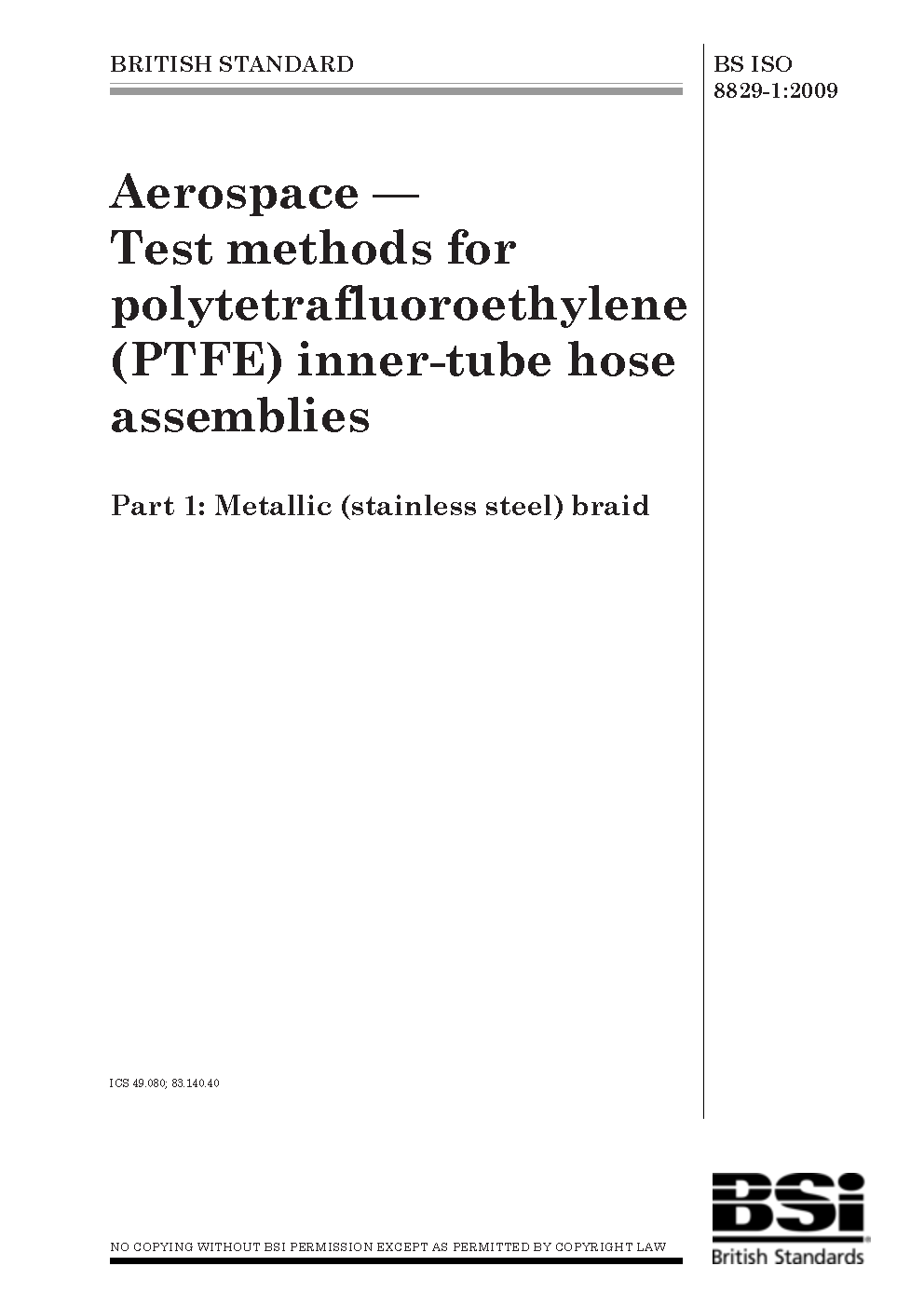 Aerospace. Test methods for polytetraflouroethylene (PTFE) inner-tube hose assemblies Metallic (stainless steel) braid