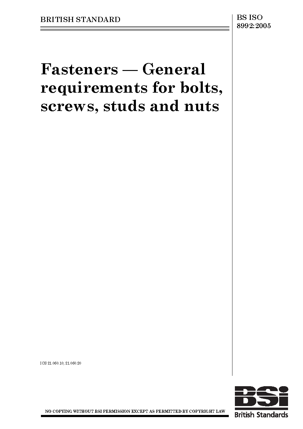 Fasteners. General requirements for bolts, screws, studs and nuts