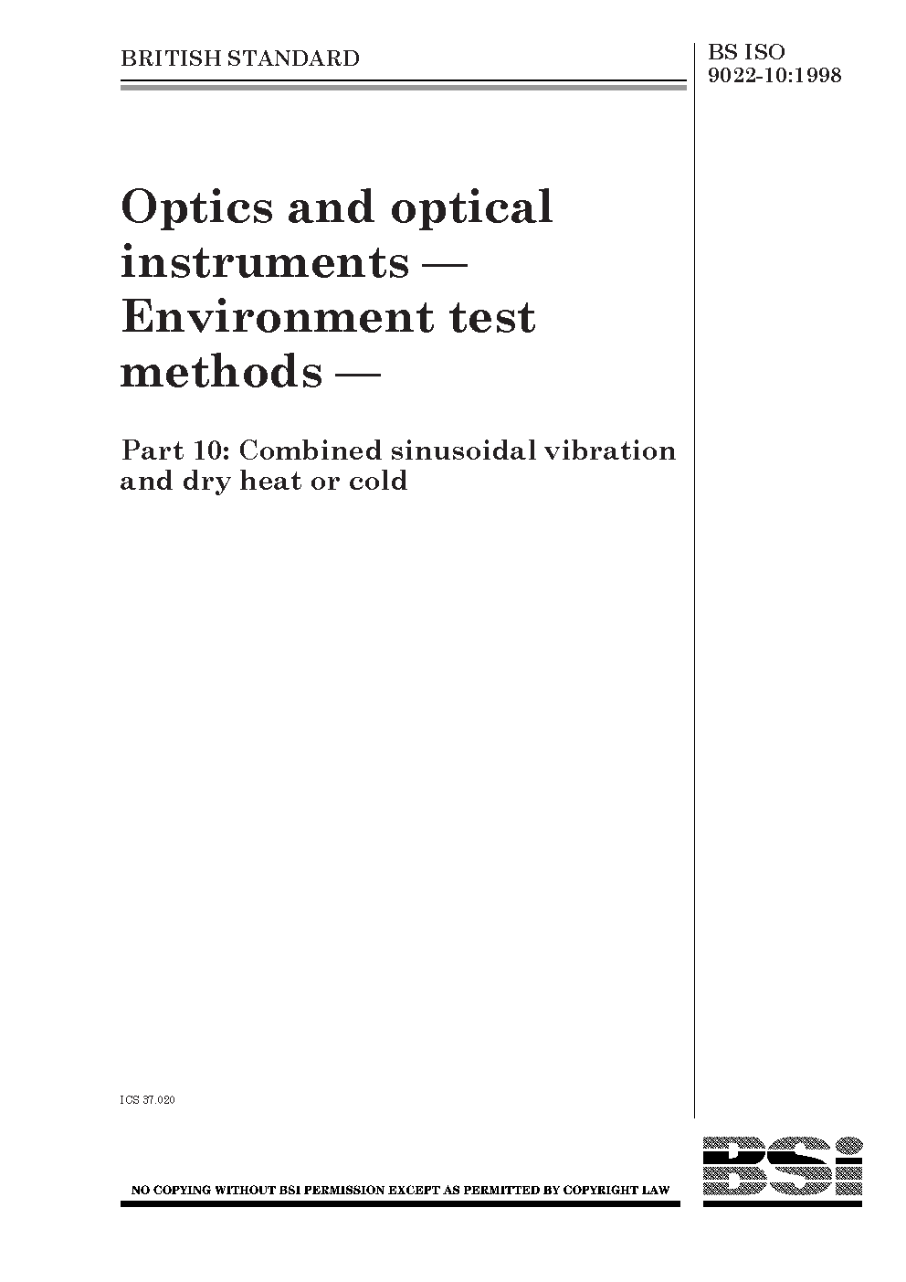 Optics and optical instruments. Environmental test methods Combined sinusoidal vibration dry heat or cold