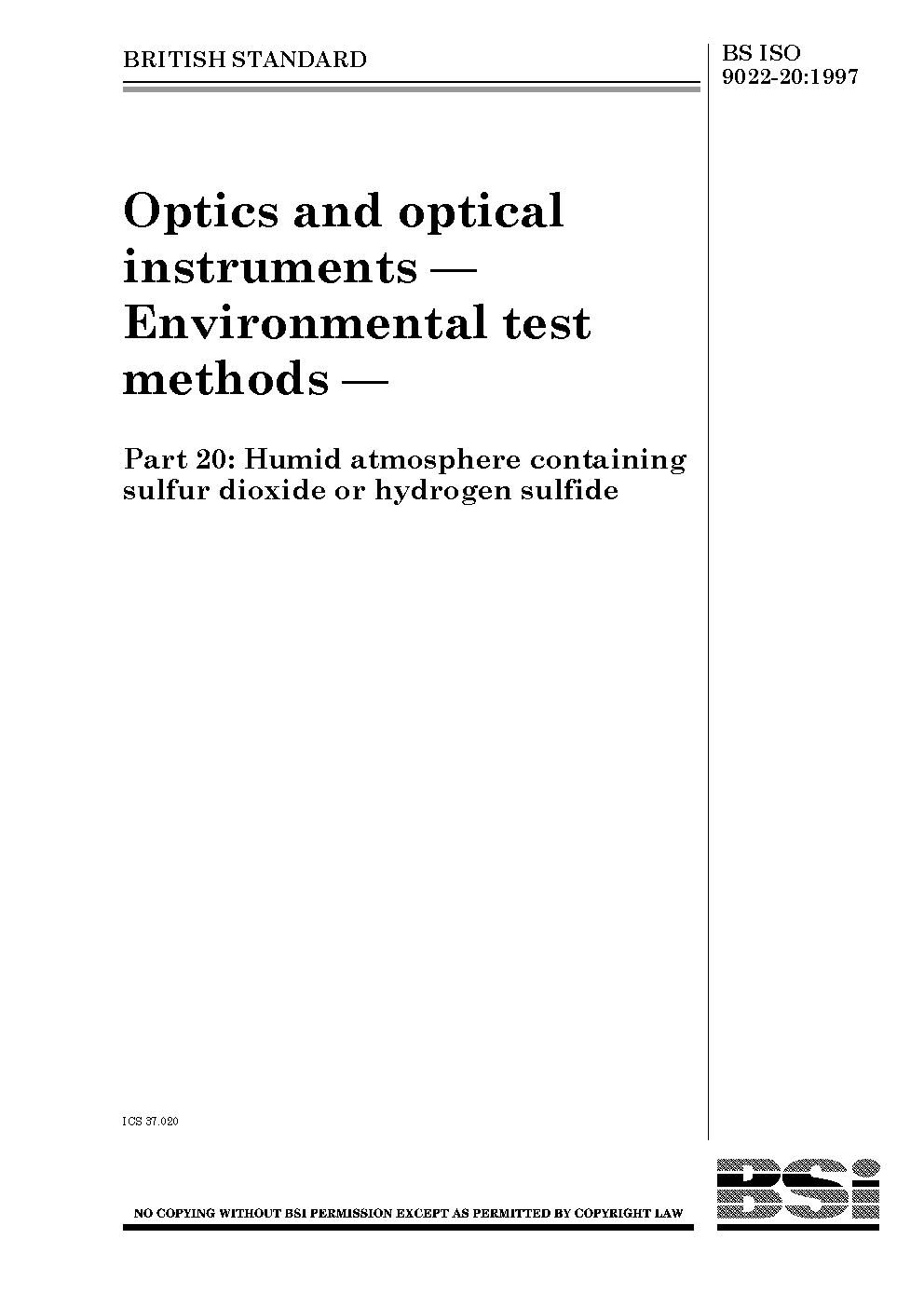 Optics and photonics. Environmental test methods Humid atmosphere containing sulfur dioxide or hydrogen sulfide