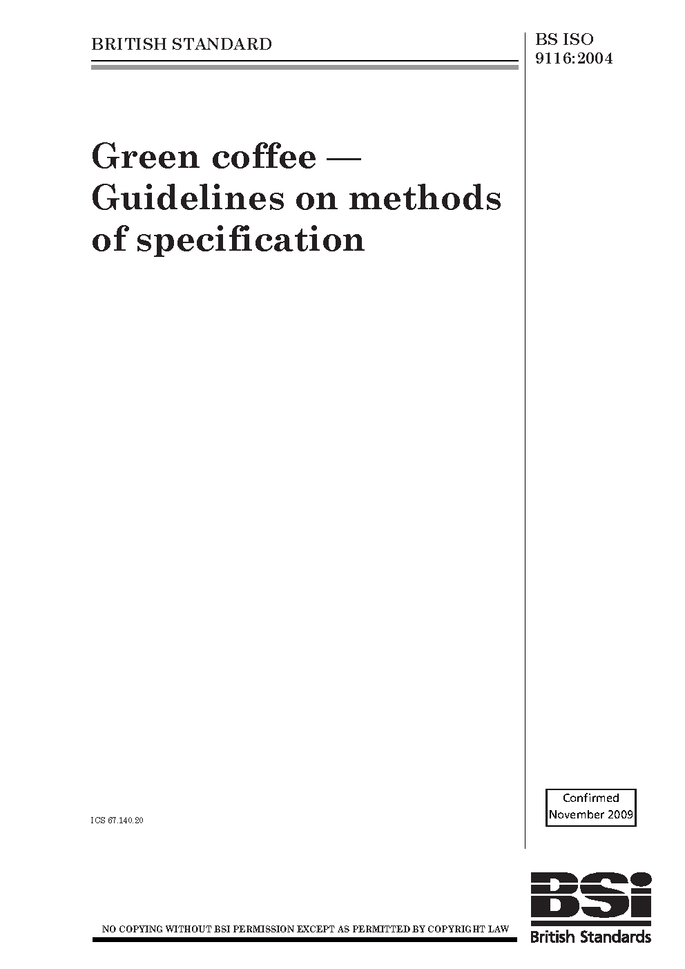 Green coffee. Guidelines on methods of specification