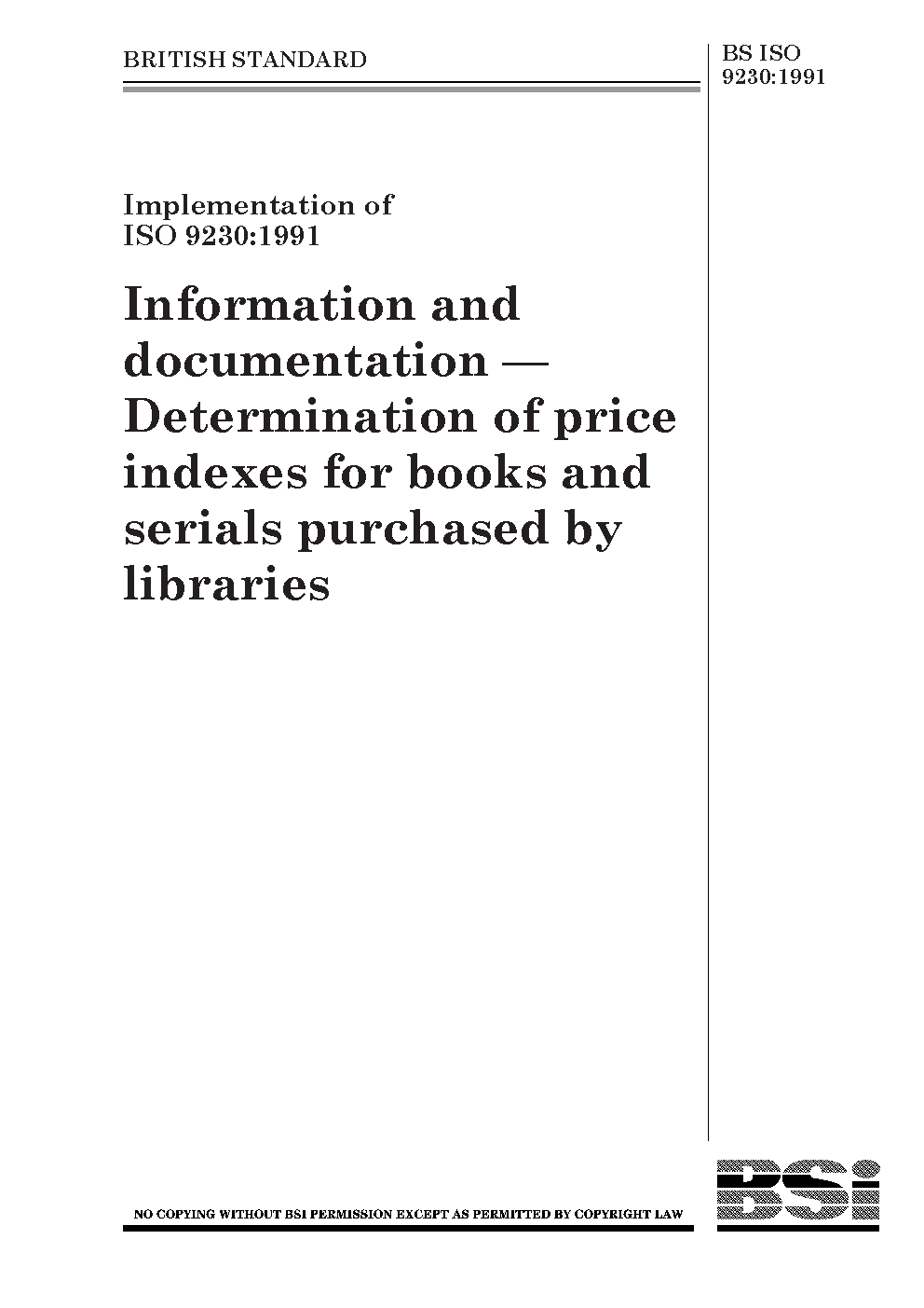 Information and documentation. Determination of price indexes for books and serials purchased by libraries
