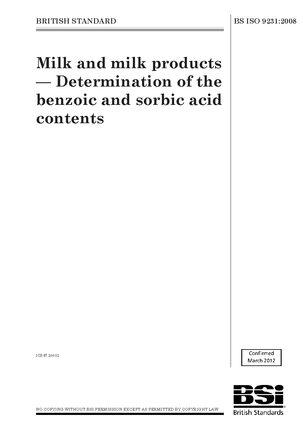 Milk and milk products. Determination of the benzoic and sorbic acid contents