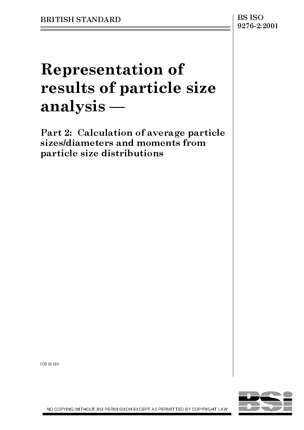 Representation of results particle size analysis Calculation average sizes/diameters and moments from distributions