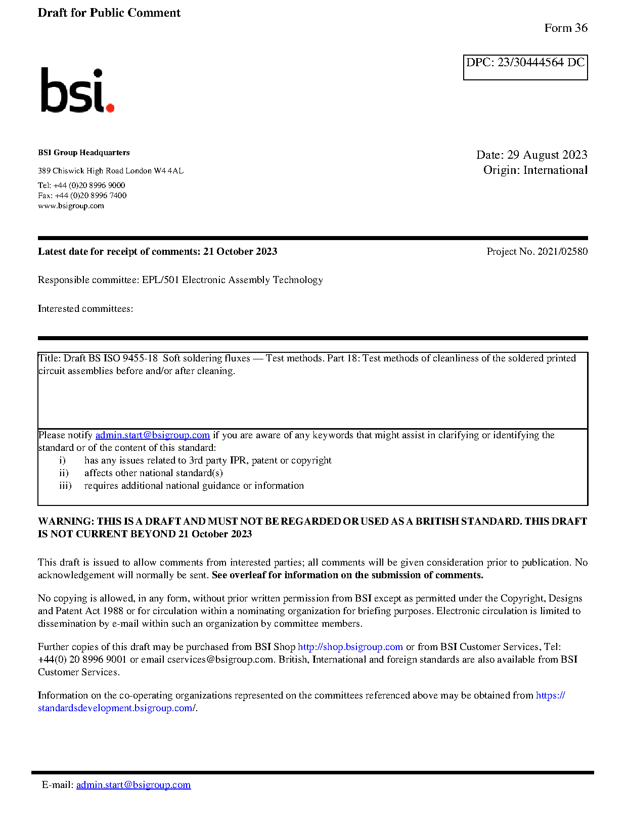 Soft soldering fluxes. Test methods Cleanliness of soldered printed circuit assemblies before and/or after cleaning