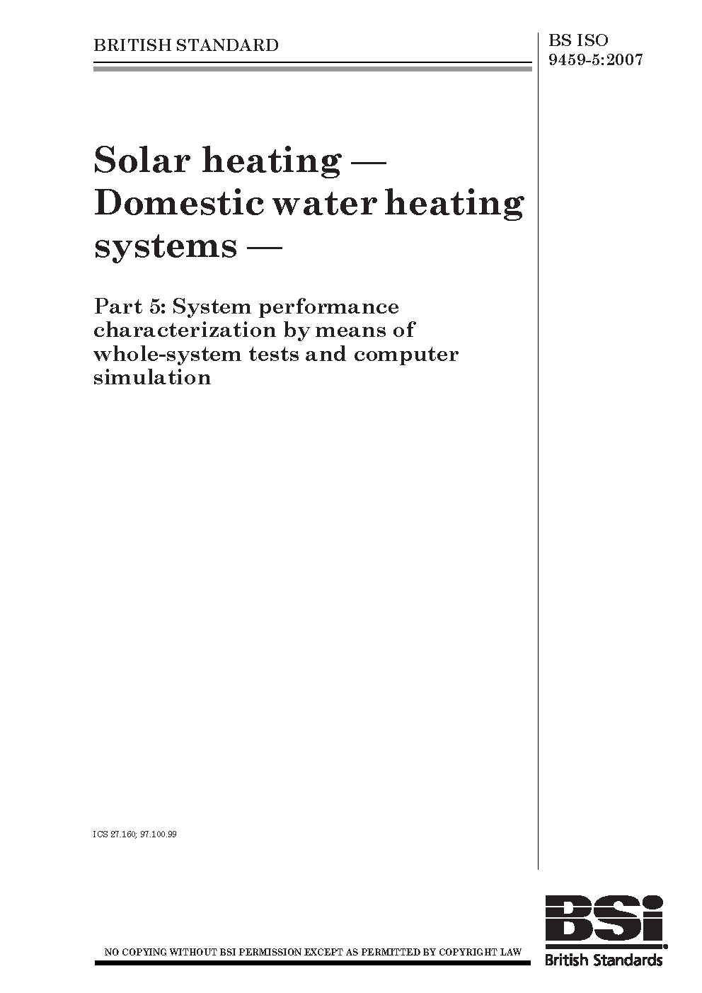 Solar heating. Domestic water heating systems System performance characterization by means of whole-system tests and computer simulation
