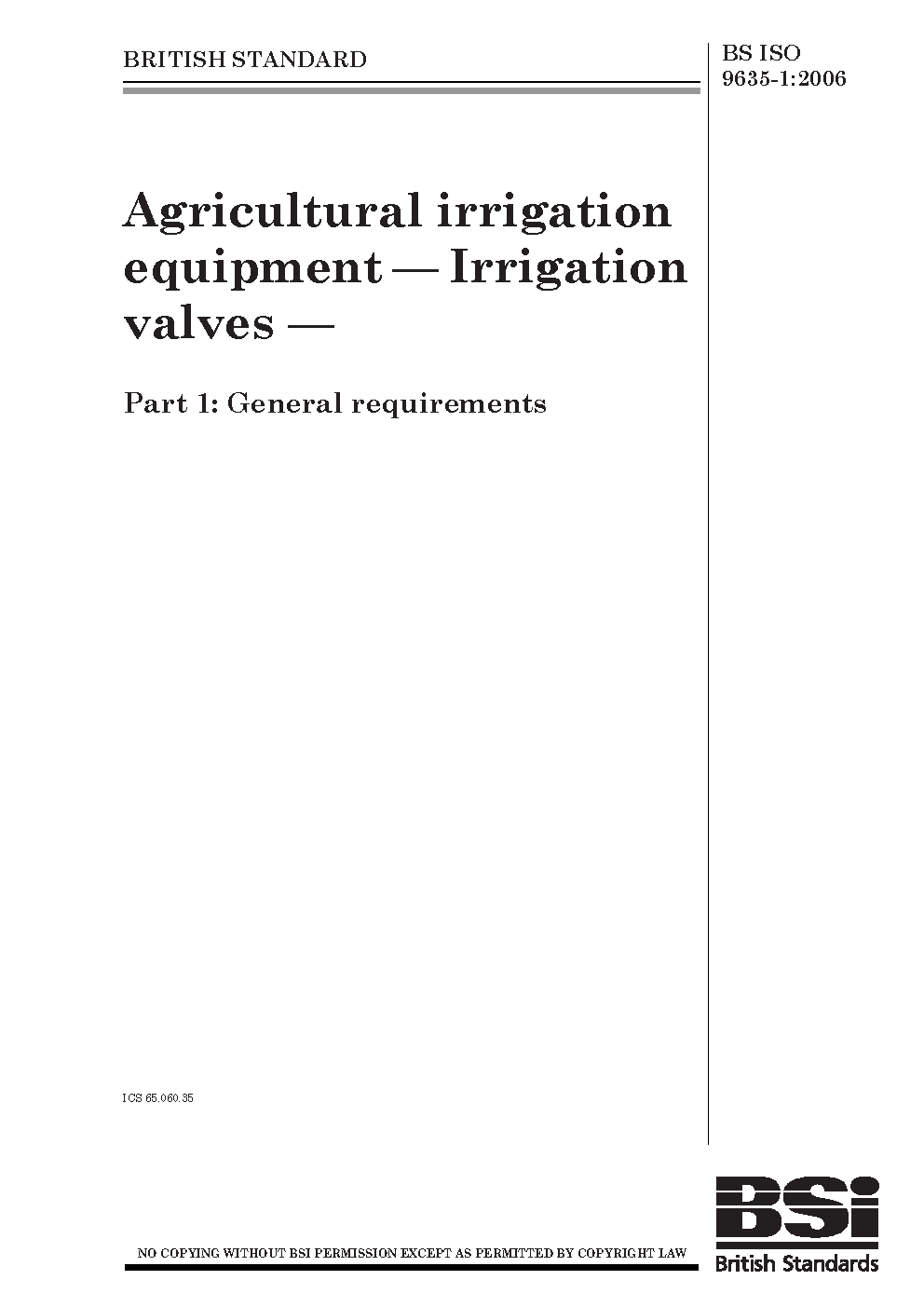 Agricultural irrigation equipment. Irrigation valves General requirements