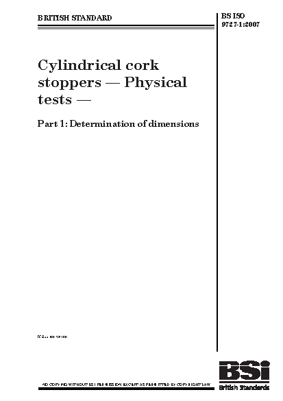 Cylindrical cork stoppers. Physical tests Determination of dimensions