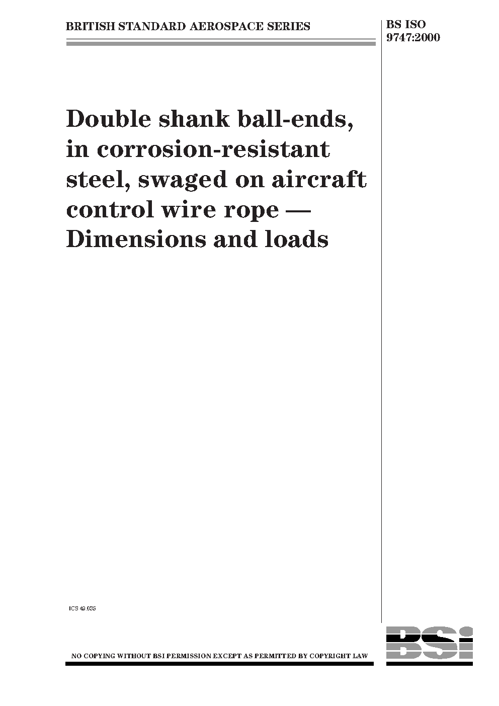 Corrosion-resistant steels;Breaking load;Diameter;Aircraft controls;Mass;Wire ropes;Aircraft components;Ball-ended linkages;Terminal fittings;Dimensions