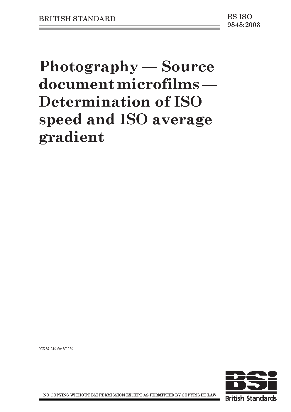 Photography. Source document microfilms. Determination of ISO speed and ISO average gradient