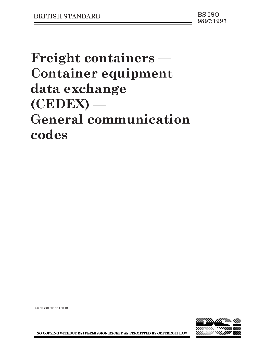 Electronic data interchange;Materials handling;Codes;Data codes;Data transmission;Information exchange;Messages;Communication networks;Coded representation;Data transfer;Freight containers;Containers