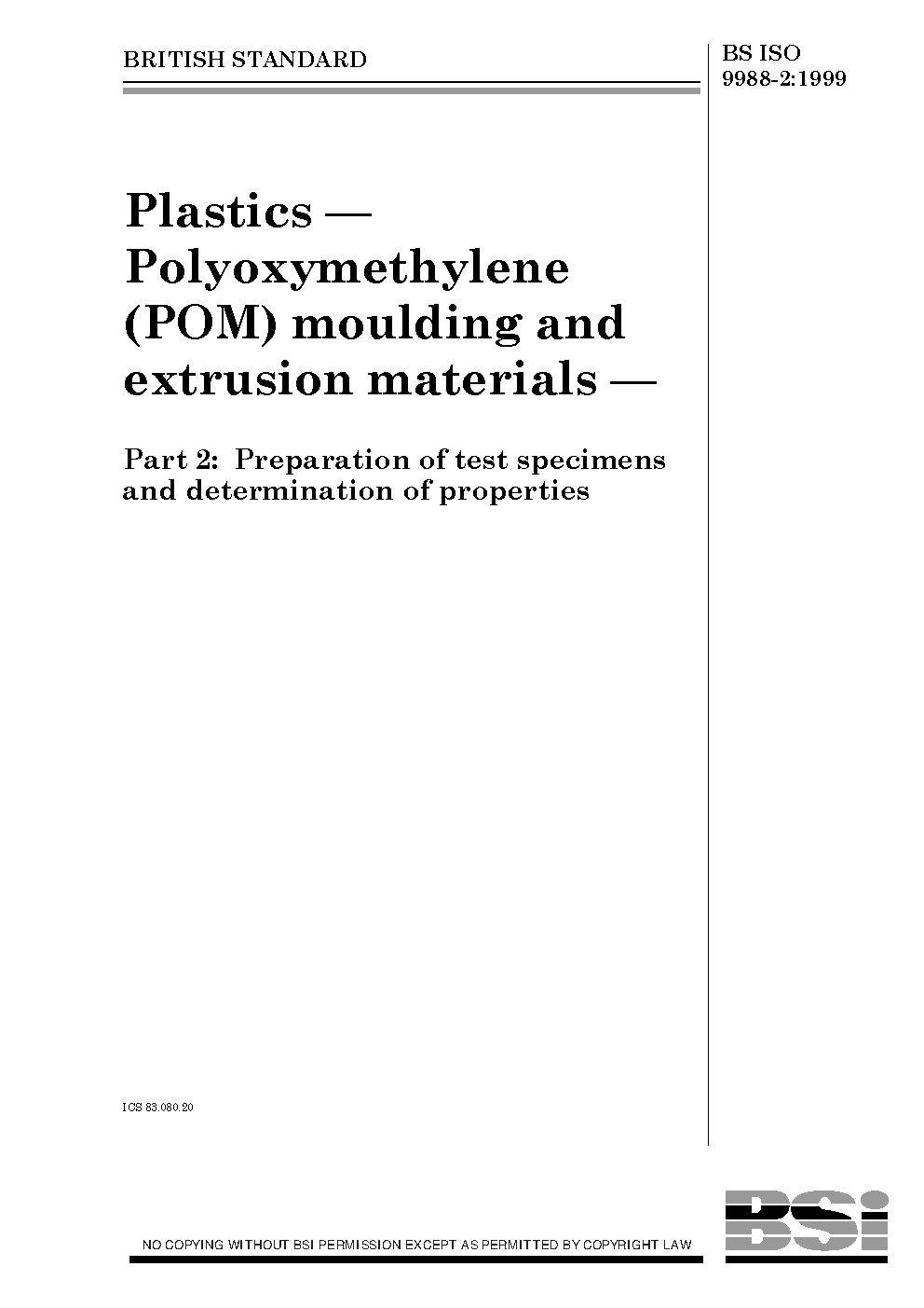 Plastics. Polyoxymethylene (POM) moulding and extrusion materials Preparation of test specimens determination properties