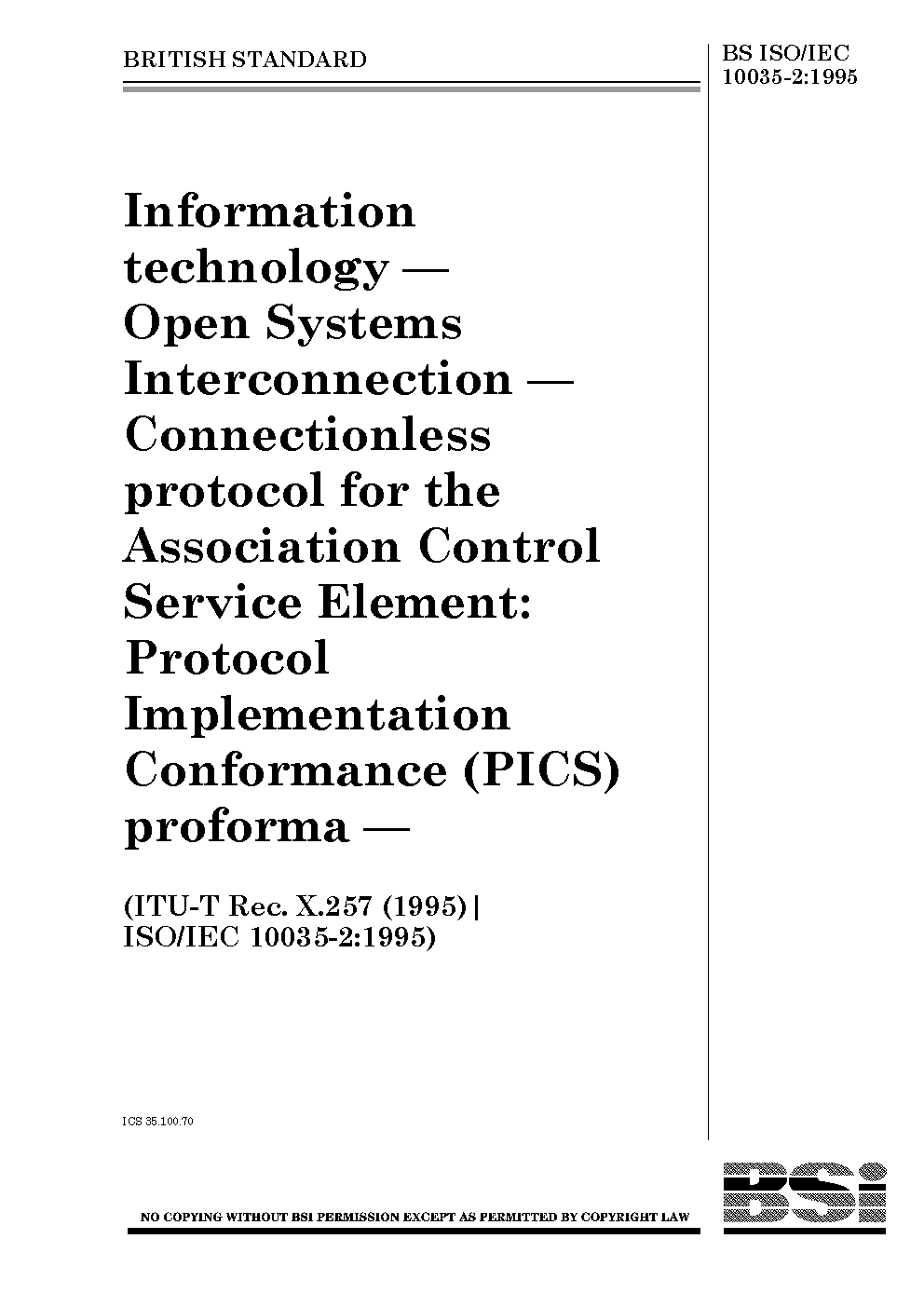 Information technology. Open systems interconnection. Connectionless protocol for the Association Control Service Element Protocol implementation conformance (PICS) proforma