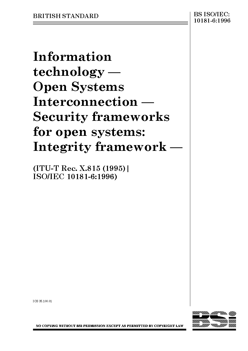 Information technology. Open systems interconnection. Security frameworks for open Integrity framework