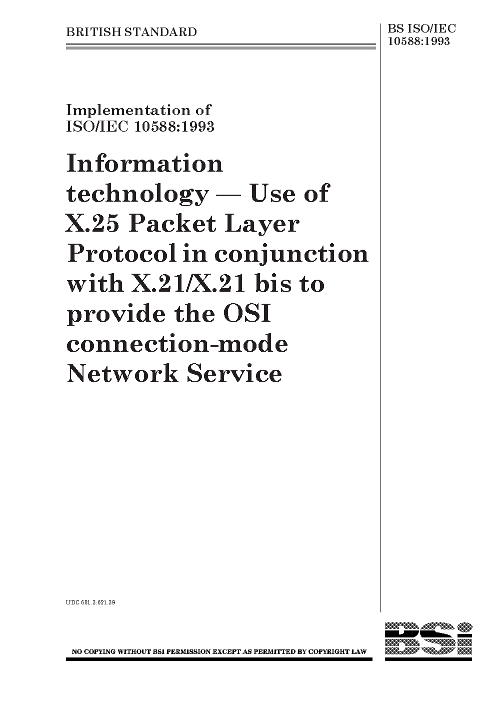 Information technology. Use of X.25 packet layer protocol in conjunction with X.21/X.21 bis to provide the OSI connection-mode network service