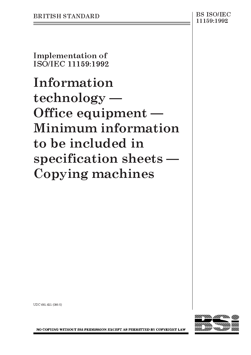 BS ISO/IEC 11159:1992