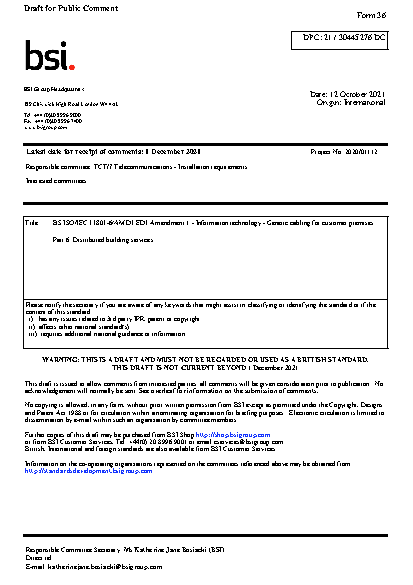 Information technology. Generic cabling for customer premises Distributed building services