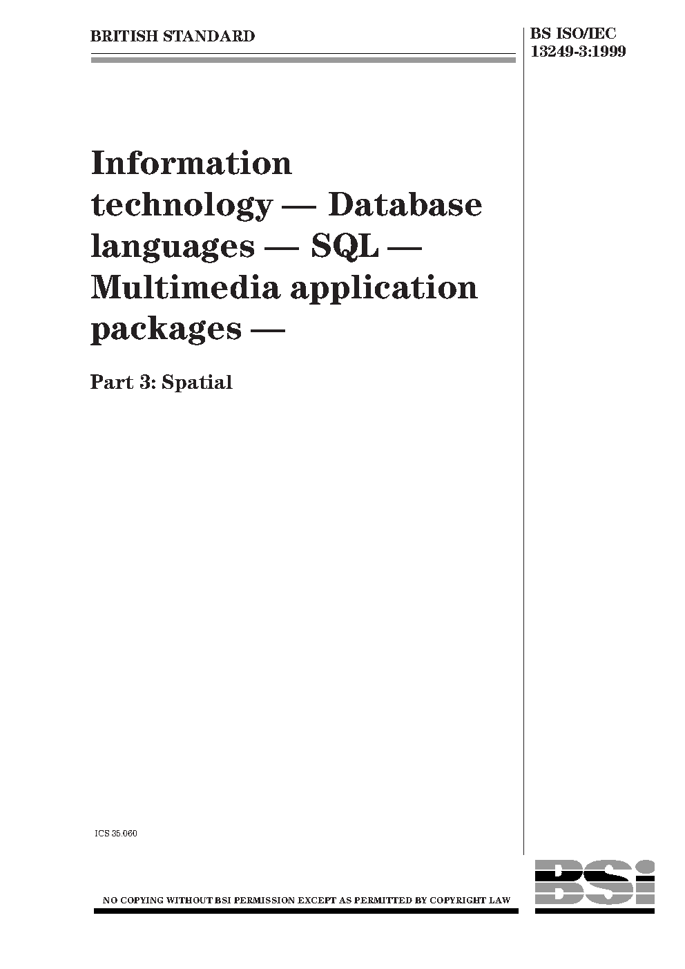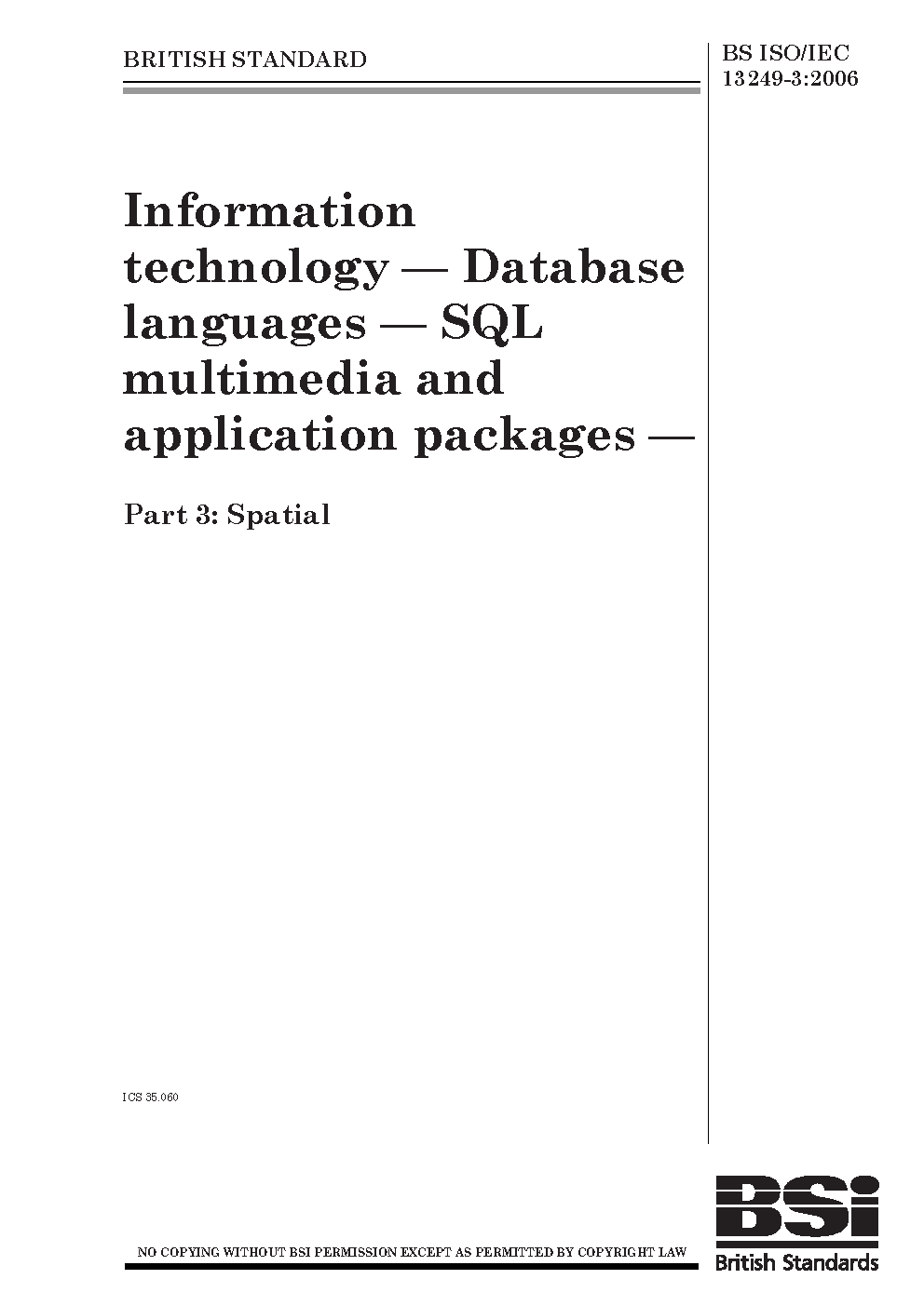 Information technology. Database languages. SQL multimedia and application packages Spatial