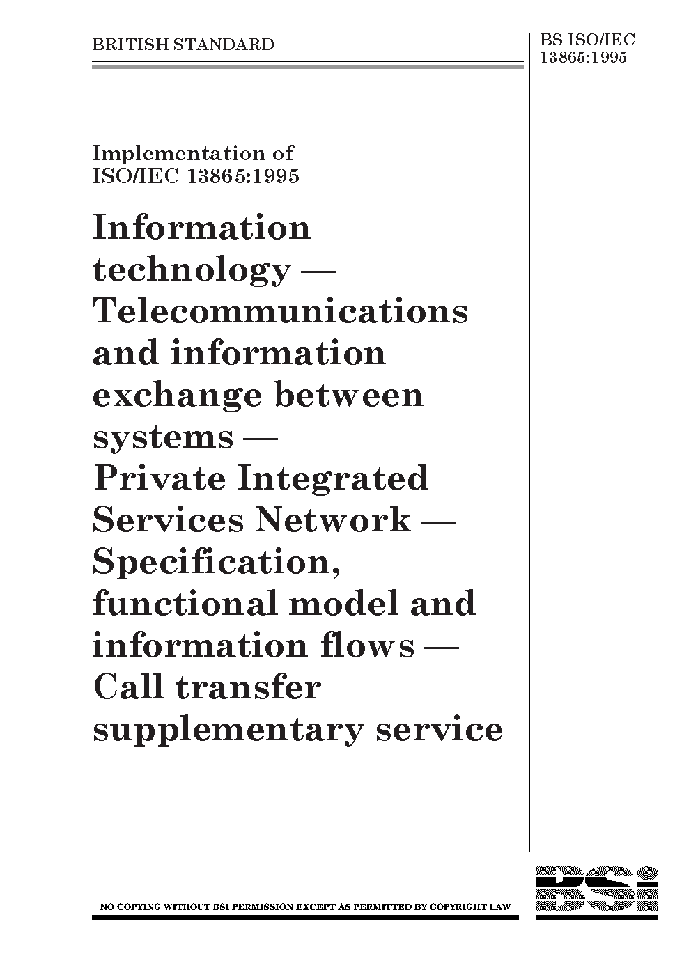 Information technology. Telecommunications and information exchange between systems. Private Integrated Services Network. Specification, functional model and information flows. Call transfer supplementary service