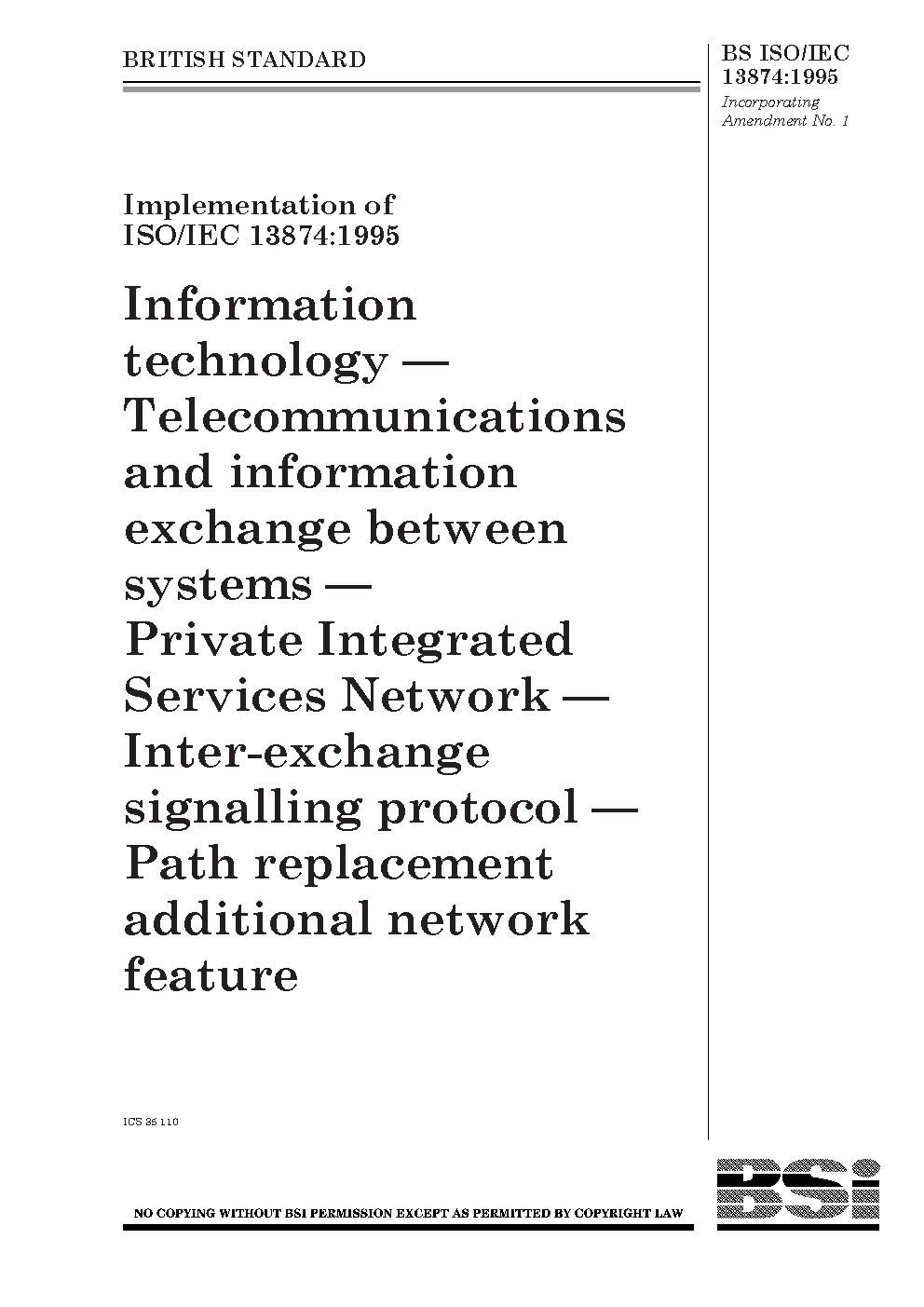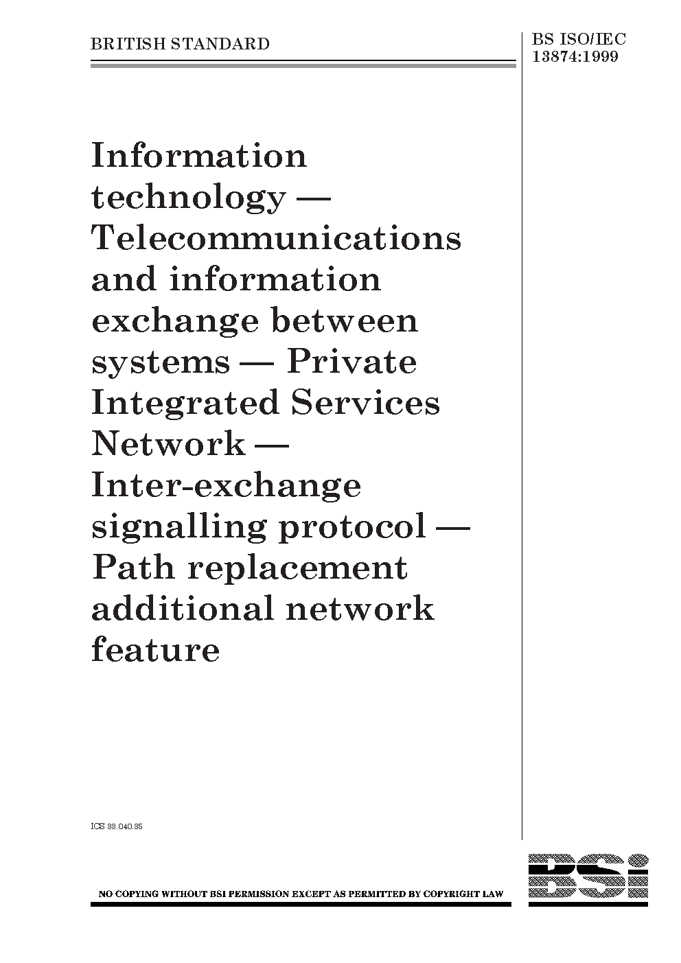 Information technology. Telecommunications and information exchange between systems. Private Integrated Services Network. Inter-exchange signalling protocol. Path replacement additional network feature